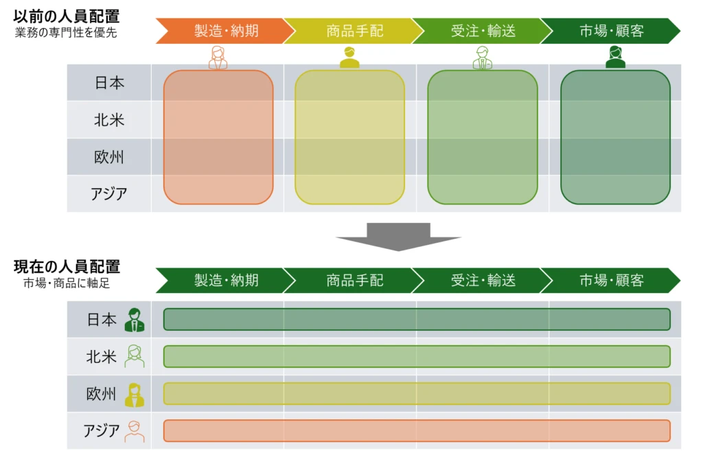 製造からお客様へ商品提供するまでのSCMの観点では、山崎氏が次のように効果を語ります。「以前はグローバル各リージョンの情報発信を待つことしかできませんでした。今はグローバル各市場の受注や在庫情報をリアルタイムに取得して、その情報を使って商品手配から材料購入まで連動することで、リードタイムの短縮、業務費用最適化ができ、商品供給力が向上しています。」このような直接的な効果の他に、業務プロセスを変えることにもつながっています。「以前は業務の専門性を優先した人員配置だったため、各担当間の情報の受け渡しに時間がかかっていましたし、担当外業務のことにコメントできませんでした。自分の情報は出せるけど、その先でどうするのかの判断はできないからです。現在は Power BI によって一人で把握できる情報が増えたので、市場・商品に軸足を置いて人員を配置しています。こうすることで、各自がサプライチェーンに責任を持って、自分で考えて判断して対応できるようになりました。例えば落札できなかった時にすぐに商品手配をストップするのか、あるいは他の販売に充てるのかなど柔軟に対応できるようになり、各担当で業務が回るようになっています。これによって、メンバーのスキルアップ、モチベーションアップなどを仕掛けていくことができているのは、大きなポイントです。」