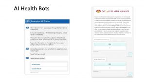 2つ目はAI Health botです。あらゆるSNS、Webページ上のチャットを通してAIが簡易診断を行います。既存botサービスを活用することで非常に短期にサービスを開始することが可能です。導入された医療現場が重篤患者の治療に集中することが可能になりました。利用者も待ち時間になしどこからでも自己診断が可能なり潜伏リスクについて把握や質疑回答機能を付加することで様々な疑問解消にも効果を発揮しています。botは診断だけでなく、COVID-19から回復した方々への抗体提供者の候補になるかの簡易診断もあり、収束にむけた社会貢献活動のお手伝いに利用されています。COVID19関連するAI botの導入は既に1300件を超えています。以前ビジネスマン向けのAI学習の講師を担当したのですが、非IT人材でもAzureを活用さえすればQAボットを数時間で作れるのは実証済みです。